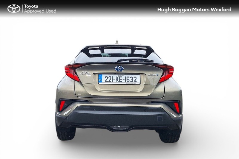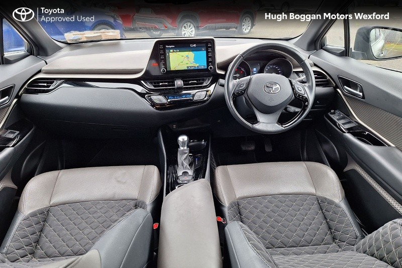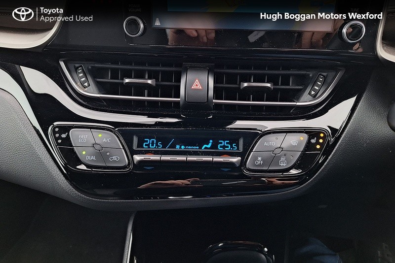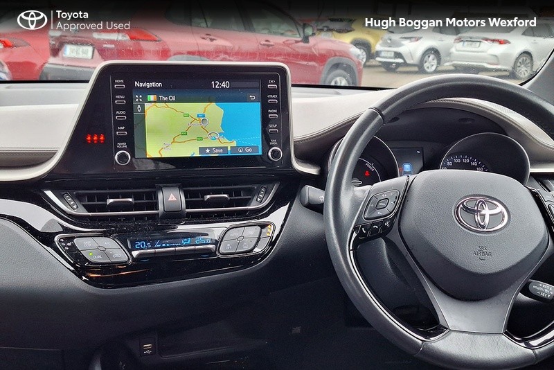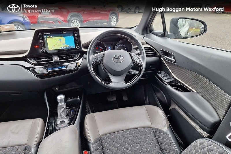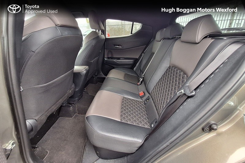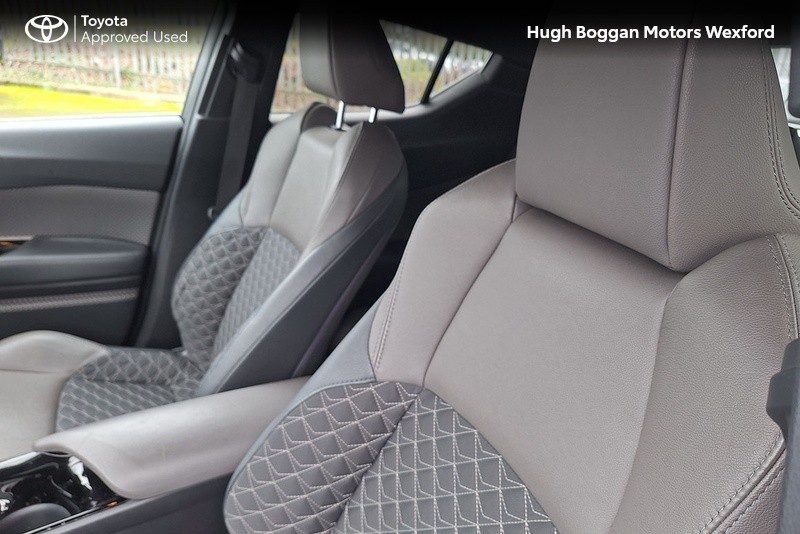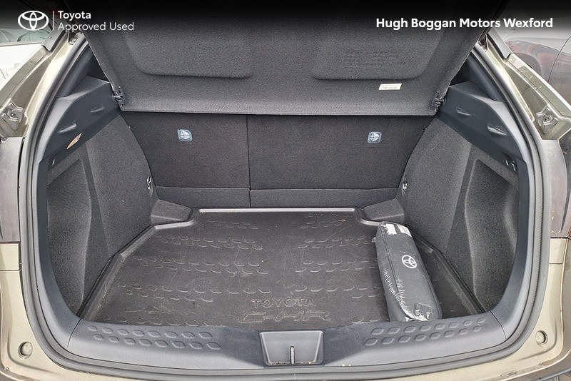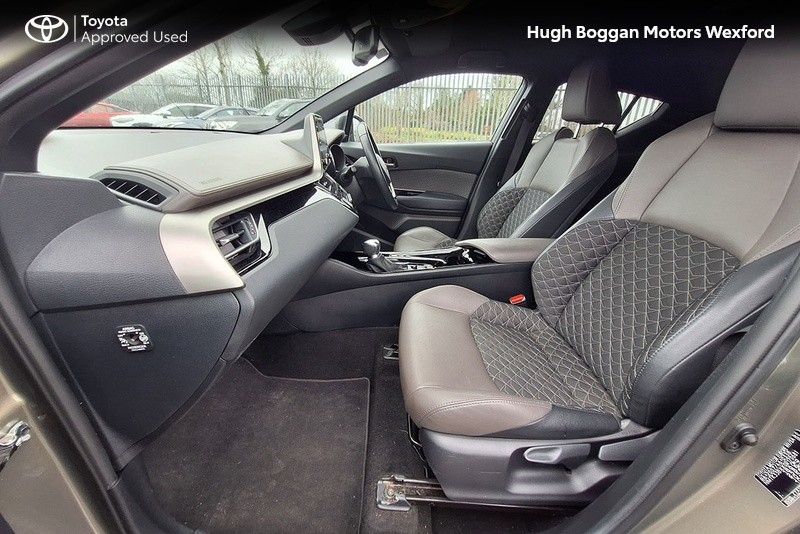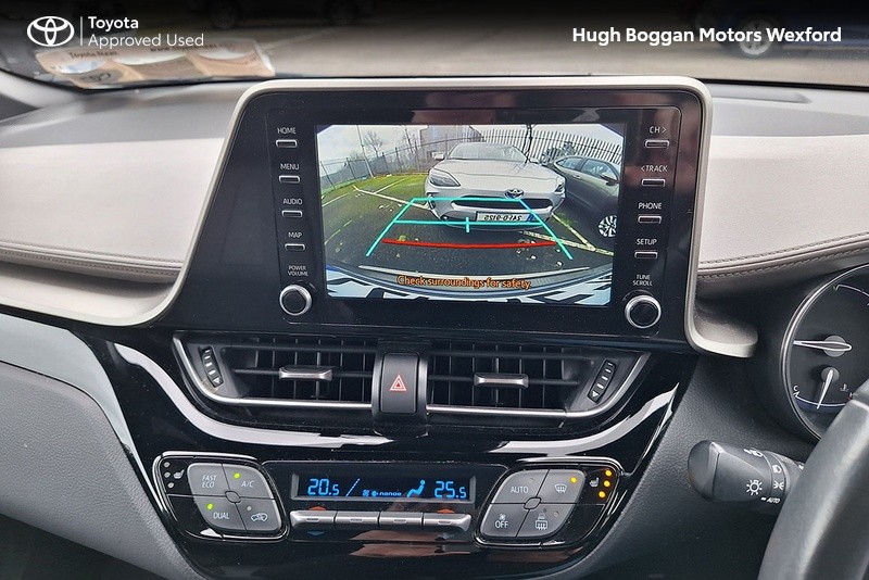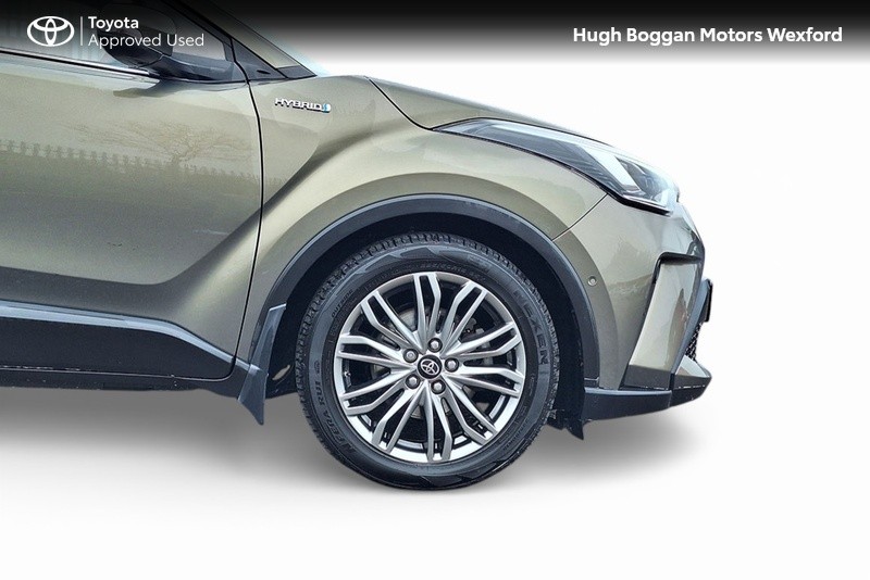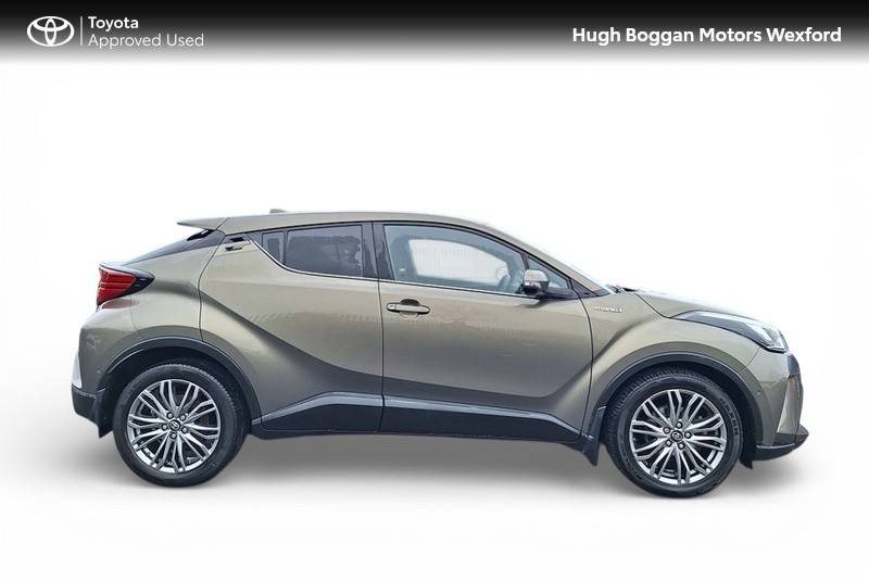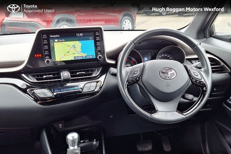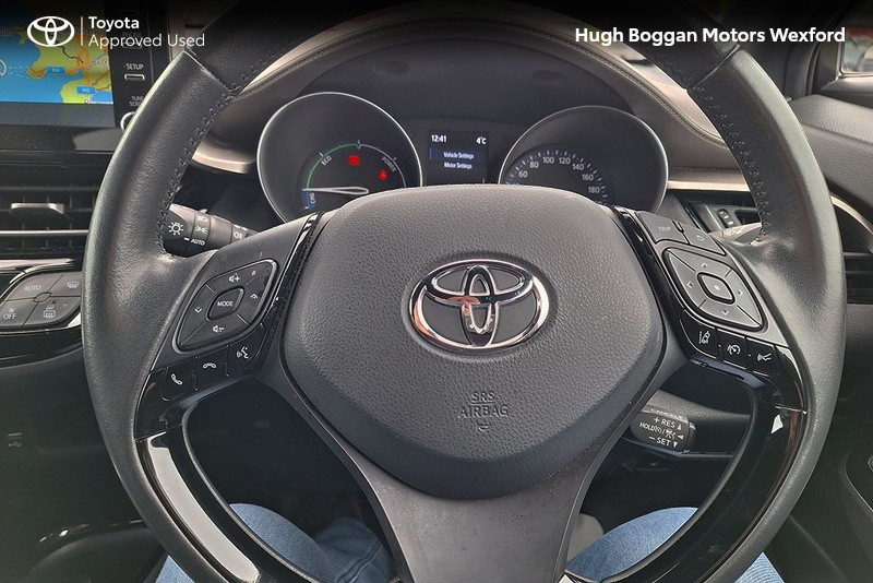 - MINTER OF A TOYOTA CHR SOL HYBRID IN OXIDE BRONZE METALLIC. SPECIFICATION INCLUDES LEATHER HEATED SEATS--- RECTRACTABLE HEATED MIRRORS ---- COLOUR REVERSING CAMERA ---- ADAPTIVE CRUISE CONTROL AND SPEED LIMITER ---- 6.1" TOUCH SCREEN STEREO WITH BLUETOOTH PHONE AND BLUETOOTH MUSIC STREAMING,USB AND AUX PORT ---- ANDROID AUTO / APPLE CARPLAY SMART PHONE INTEGRATION ---- STEERING WHEEL WITH INTEGRATED PHONE,STEREO AND COMPUTER CONTROLS ---- 18" ALLOY WHEELS ---- DAYTIME RUNNING LIGHTS ---- AUTOMATIC HEADLAMPS WITH AUTOMATIC DIMMING FUNCTION ----- FRONT FOG LAMPS ---- ELECTRIC MIRRORS ----TOYOTAS SAFETY SENSE SYSTEM WITH AUTONOMOUS BRAKING AND PEDESTRIAN RECOGNITION ----- LANE DEPARTURE ALERT WITH STEERING ASSIST.COMES WITH A TOYOTA FITTED CARE PACK. UP TO 6 YEARS OR 185000 KMS TOYOTA MECHANICAL WARRANTY AND 11 YEARS HYBRID BATTERY WARRANTY AVAILABLE. FOR A COMPETITIVE FINANCE QUOTE, TRADE IN VALUATION OR MORE INFORMATION ON THIS VEHICLE JUST PHONE OUR SALES LINE AND ASK FOR DARREN, OR EMAIL ENQUIRIES TO dcaulfield@hughbogganmotors.ie.